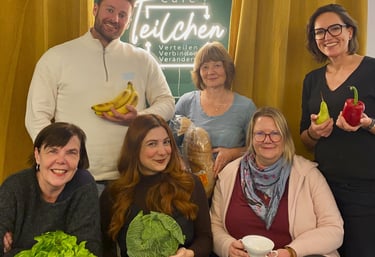 Das Café Teilchen eröffnet in Siegen einen physischen Begegnungsraum, in dem allen zum einen gerettete Lebensmittel im Fairteilerkühlschrank kostenlos und zum anderen Gerichte oder Getränke nach dem Pay-what-you-want-Prinzip zur Verfügung stehen ("Pay what you want" kann auch 0 Euro sein). In den Fairteilerkühlschrank können auch von euch selbst Lebensmittel eingestellt werden, soweit es sich nicht um verdorbene oder zubereitete Lebensmittel handelt.
